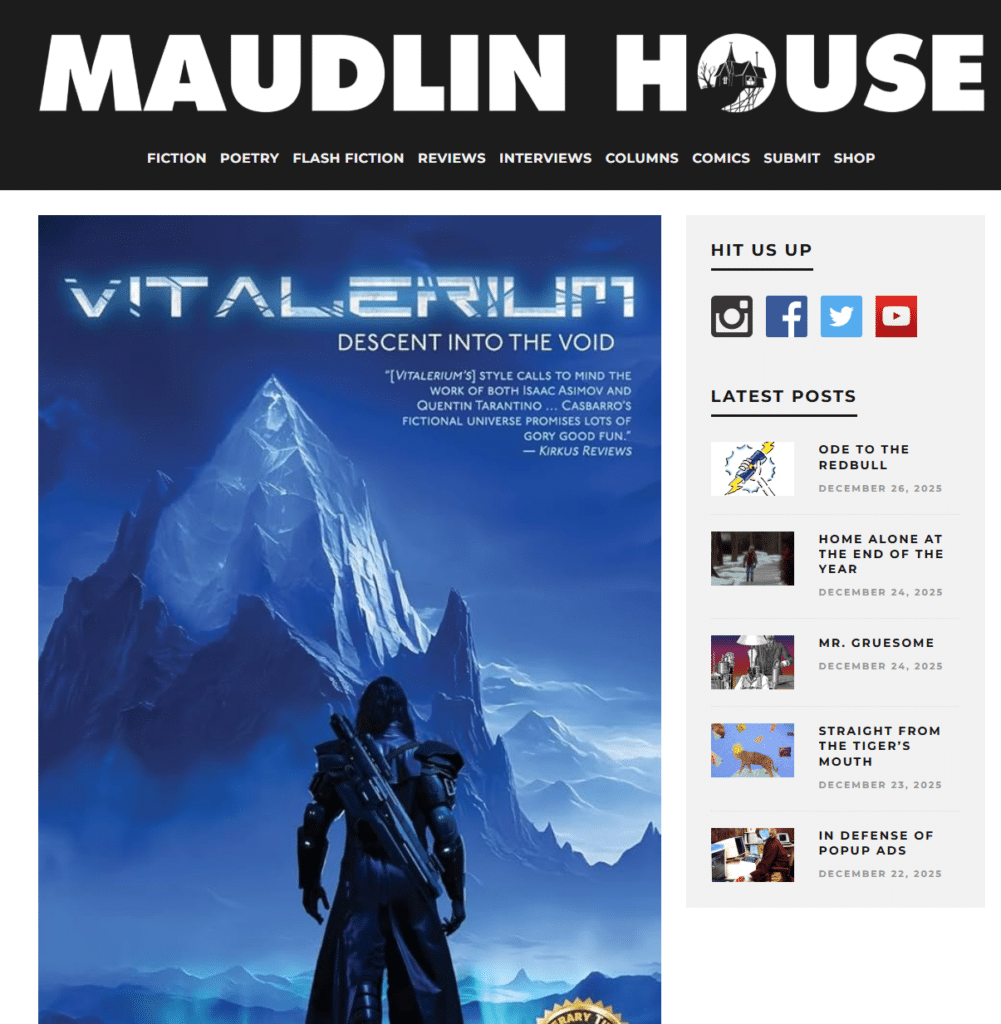 First off, I can’t thank Maudlin House enough for reviewing Vitalerium. As a first time author, it can be a struggle–creating your brand, learning to market, chasing people down for reviews, and building a grass-roots following. Not to mention, putting out original content for the first time and hoping to god that it’s well received? That’s a whole other conversation. But to put yourself out there and receive such a glowing critique of what originally started as a cathartic practice? That, my friends, is fucking priceless.